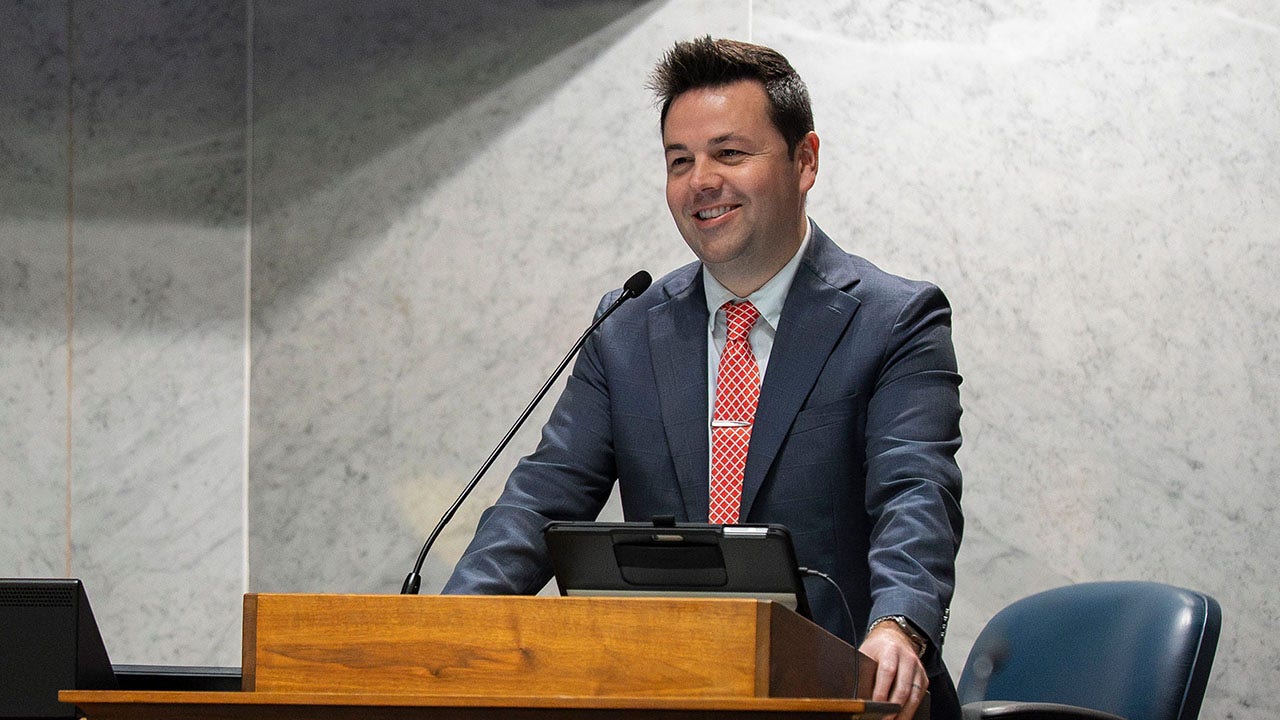 Gob. Micah Beckwith is aimed at the Senate on April 24, 2025, on Thursday, Direct Legislative Session in Indianapolis. (Grace Hollars / indystar / USA current network Imagn images)