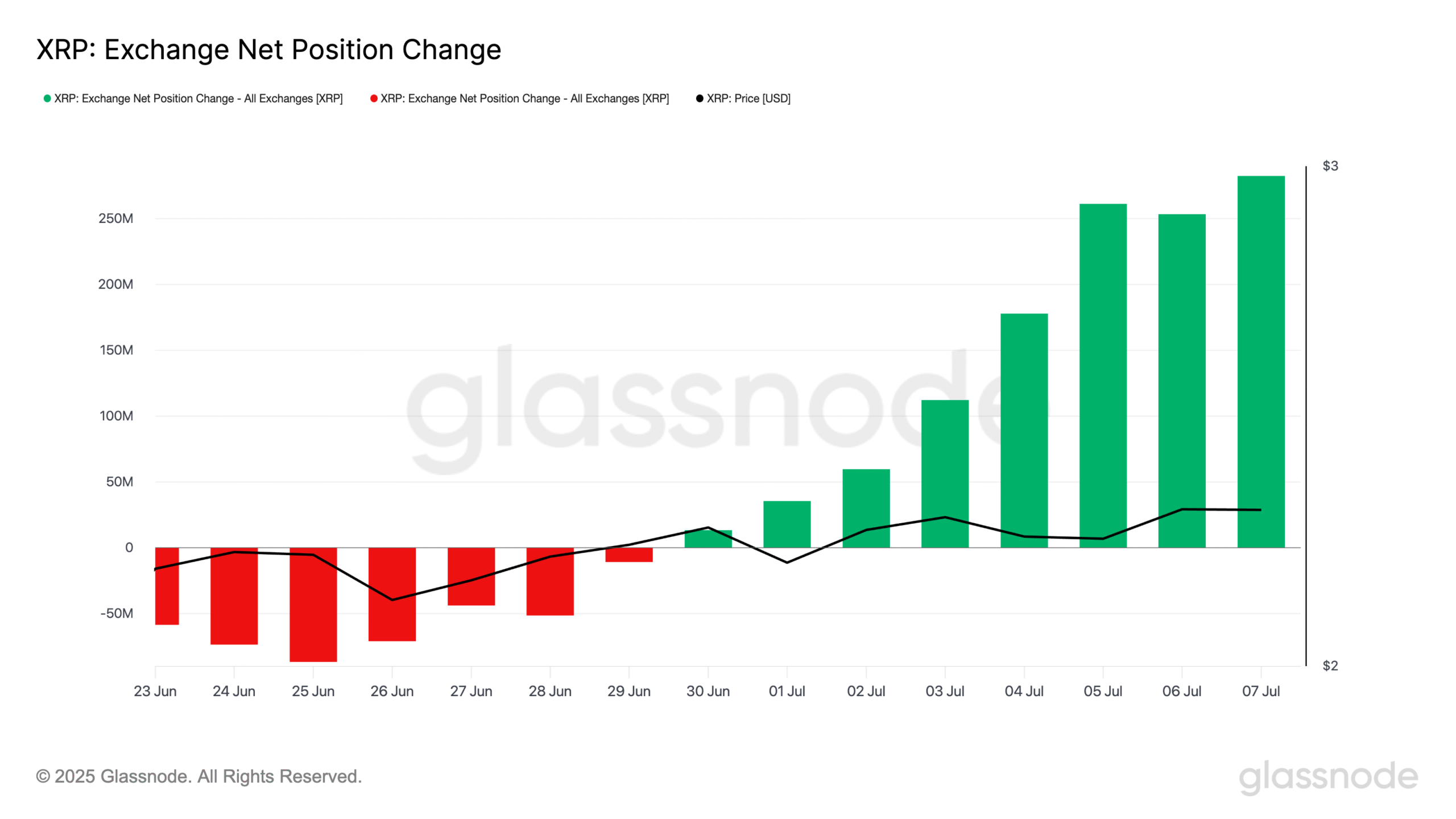 Glassnode data reveals a fixed increase in changing the XRP exchange during the past week. The data on the series shows that this scale, which tracks the net amount of symbols that are transferred to the central stock exchanges, rose to the highest level in eight months at 283 million XRP on July 7.